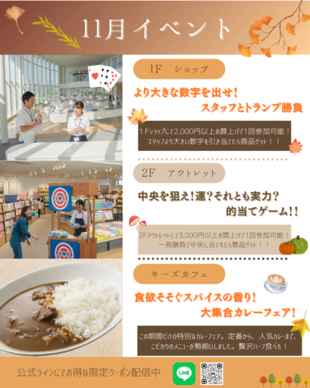 食欲の秋、スポーツの秋、 楽しさ満載のイベントで、 11月も思い出を作りませんか?